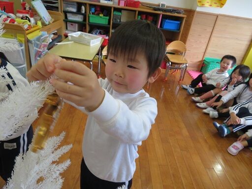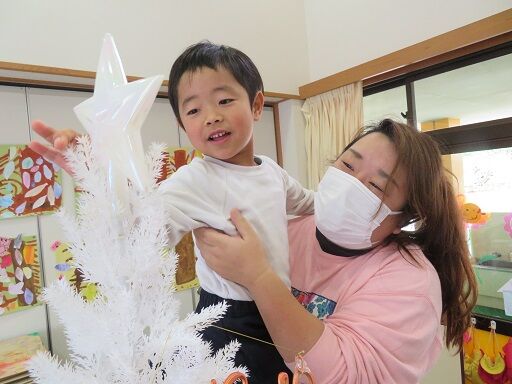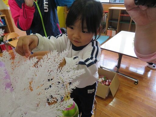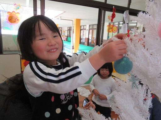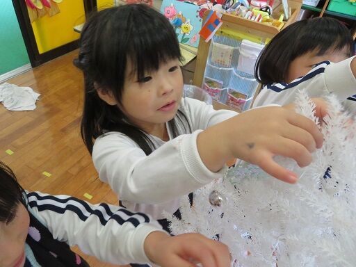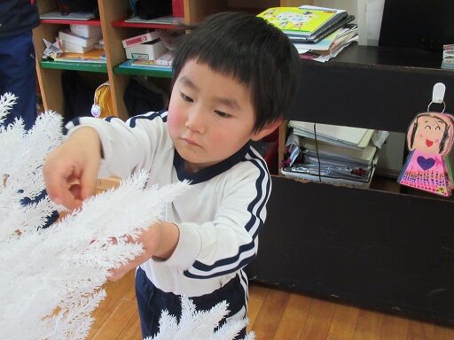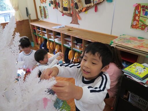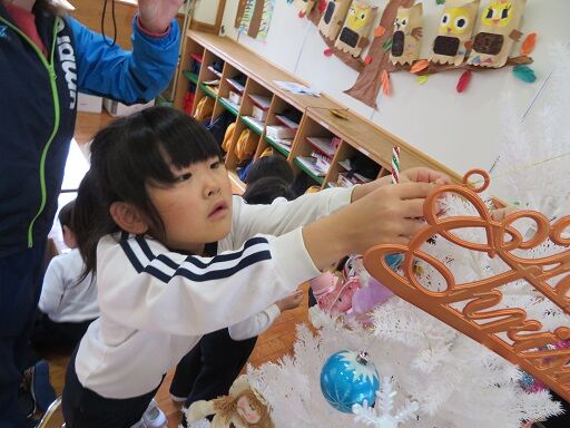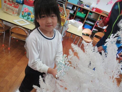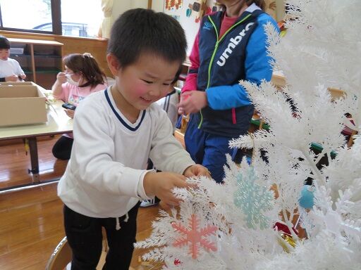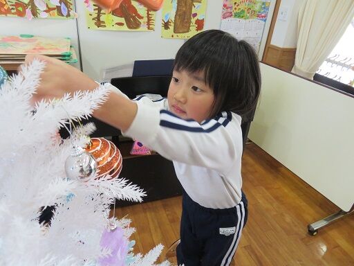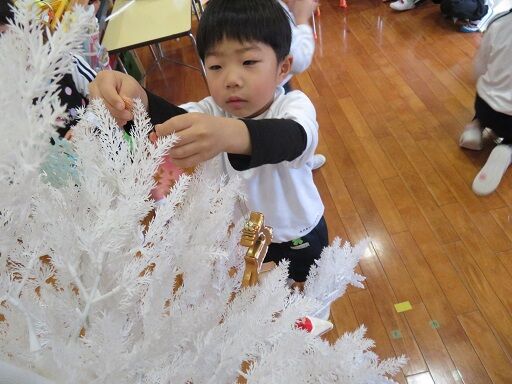 そして今日は幼児組のみんなでクリスマスツリーに飾り付けをしました