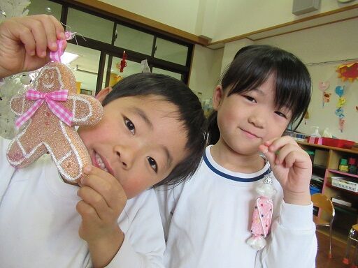先生に抱っこしてもらったり、椅子を使ったりして高いところにもいっぱい飾ってくれましたよ