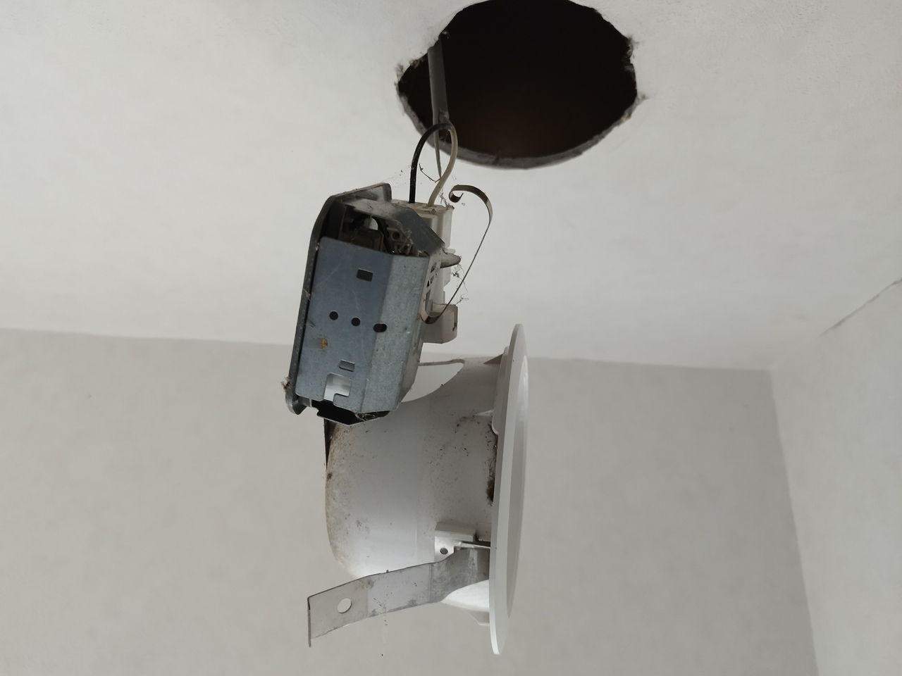 と思いきや、ふと階段の照明を見るとヤバいものが目に入りました。