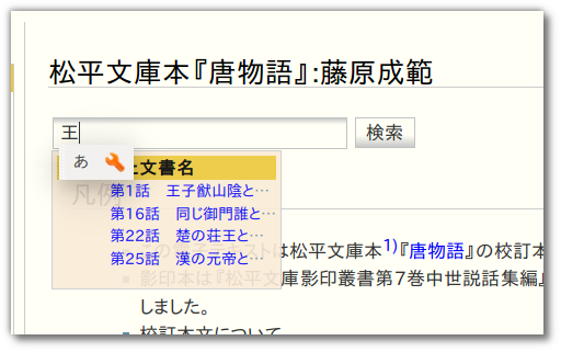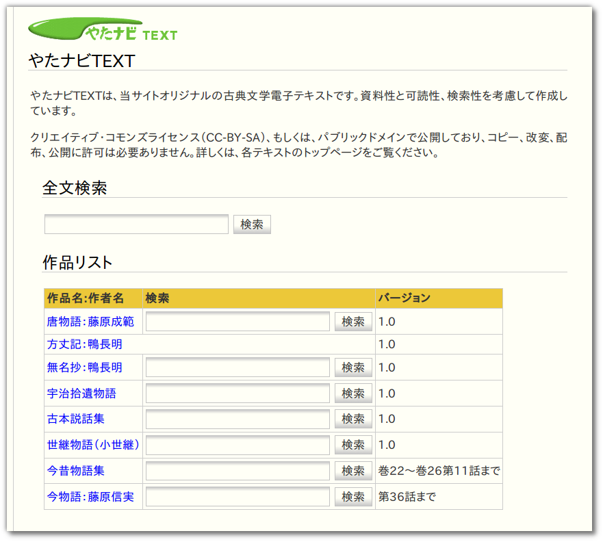 電子テキストの提供は、10年前、やたがらすナビを始めたころから考えていたのだが、著作権や文字コード、検索システム、HTMLによる表現の限界など、様々な問題があって、なかなか手を付けることができなかった。それらの問題のほとんどが、DokuWikiを導入することによりクリアできるようになった。