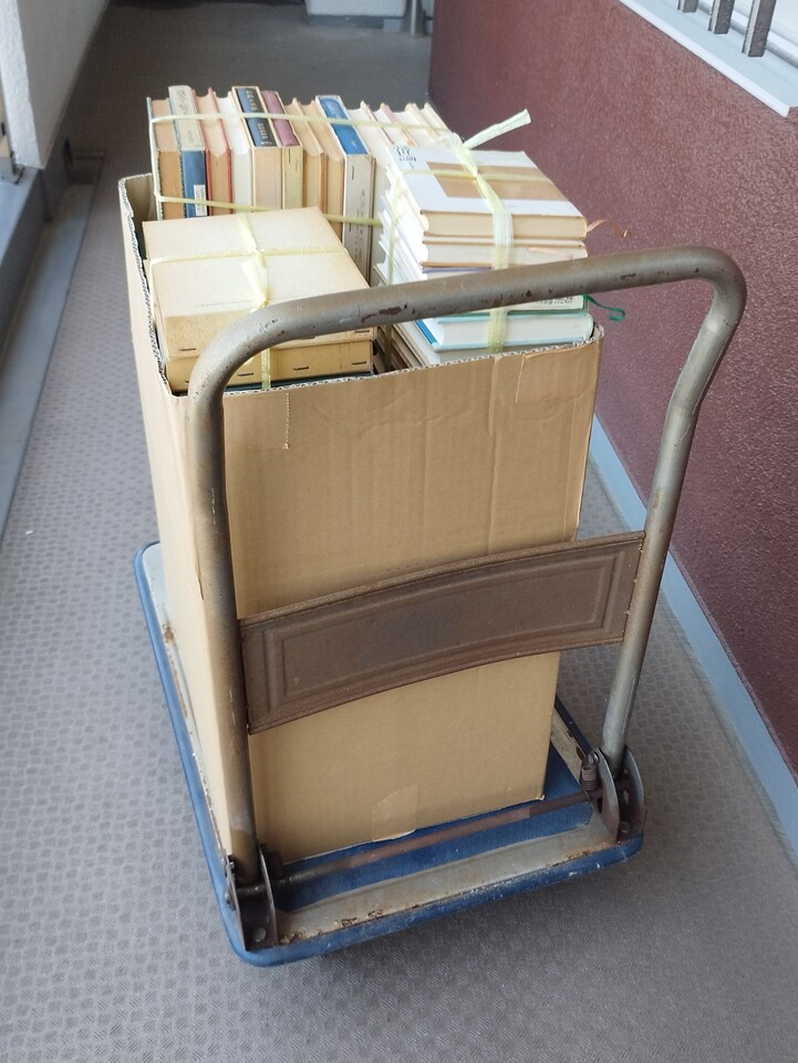 本はたしかに重いが、箱にきっちり収まるので、一度に効率よく大量に運べる。なにしろ16年前の経験があるからノウハウも分かっている。