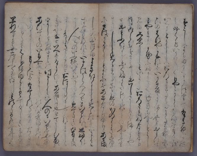 こちらは、さっきの達筆野郎(失礼!)とは正反対で、流麗な平安仮名になっていて、前の人と比べると、別の方向で美しい。変体仮名や崩し方もそれほど妙なものはないようだ。初めて写本を読む人にも勧められる字である。たぶん、この人は一人目とは仲が悪いに相違ない。