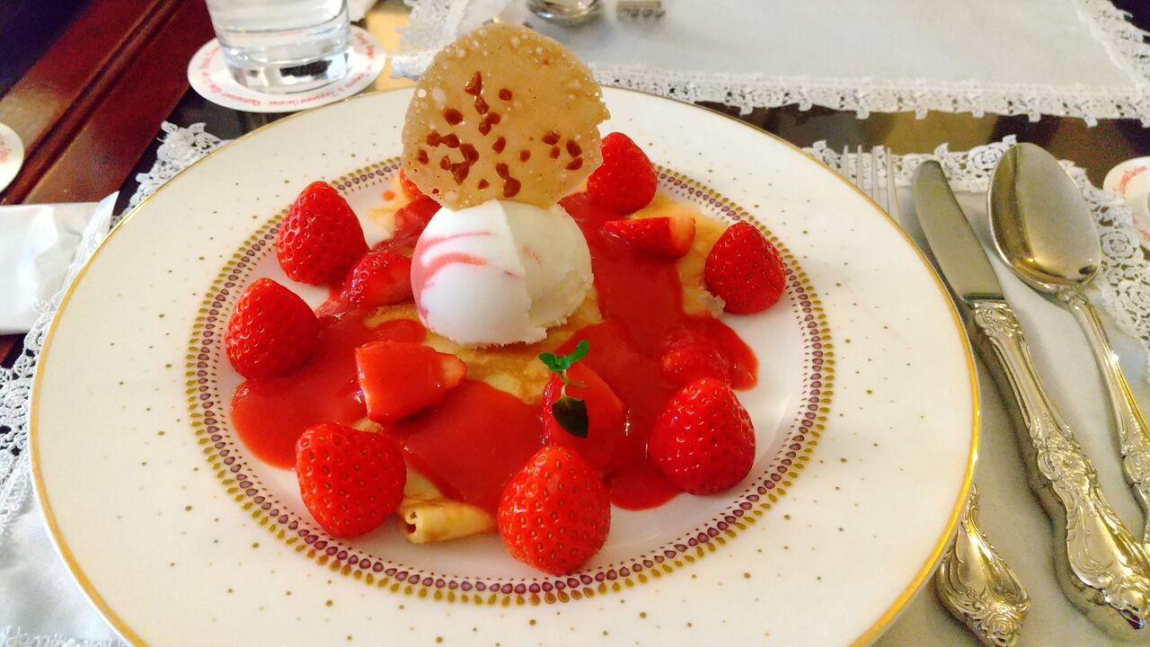 わたしが注文したクレープのアイス添えいちごづくし。