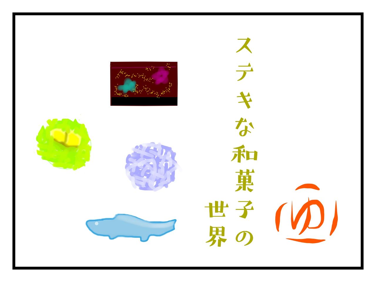 まず本で月ごとの和菓子の名前を調べて絵に描き、その感想を書く、という内容のようです。横で見ていて「月ごとの菓子がある国って他にあるのかしら?」と素朴な疑問がわきました。季節ごと、行事ごとはもちろんあるでしょうね(クリスマスやバレンタインデー)。日本でも端午の節句(柏餅)やお盆(干菓子)、お月見(団子)など、それぞれの行事に合わせてお菓子があります。でも茶菓子としての和菓子に注目すると、月によって変わるんですよね。先人たちの月日を楽しく重ねる知恵が窺えますし、何よりその造型美に驚かせられます。