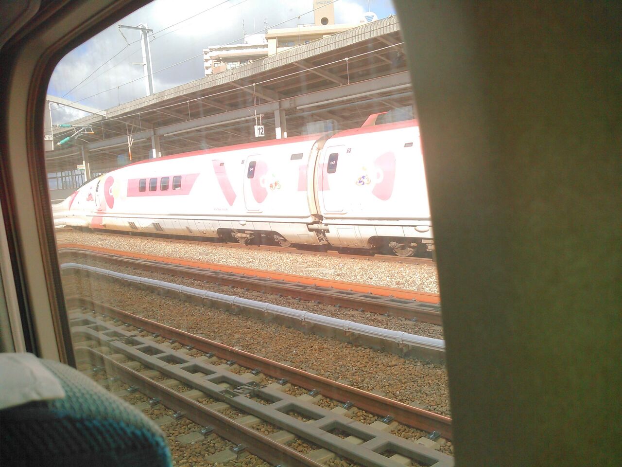 はい。キティちゃんラッピングの新幹線でした。