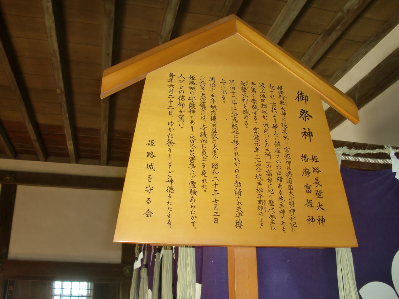 最上階には、姫路長壁大神と播磨富姫神が祭られています。