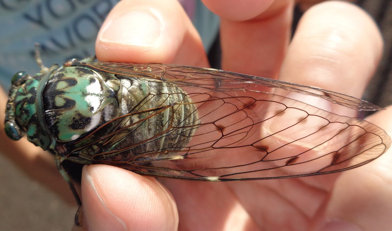 (ミンミンゼミでしょうか。うすく透き通った羽が綺麗です)