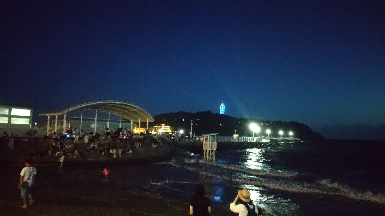クラゲを堪能した後は、江ノ島へ移動して、花火が上がるのを海岸で待ちました。えのすいの水族館も常連ですが、今回は花火目的です。