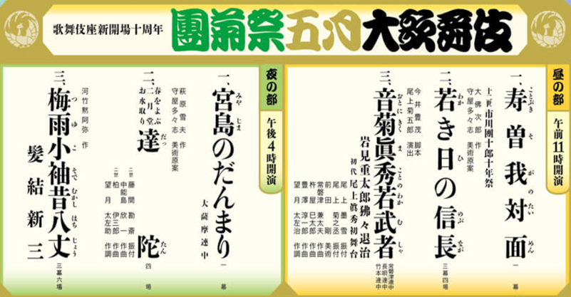 「昭和11(1936)年の4、5月に、歌舞伎座で始まった「團菊祭」。九代目團十郎、五代目菊五郎の功績を顕彰するべく始められたもので、戦後は昭和33(1958)年に復活、同60(1985)年の十二代目團十郎襲名からは五月興行恒例の祭典として、皆様に愛されてきました。」