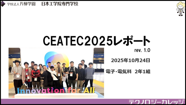 10月14日(火)から17日(金)まで、幕張メッセで開催されている「CEATEC 2025」に、電子工学コースの1・2年生が15日(水)に参加しました。