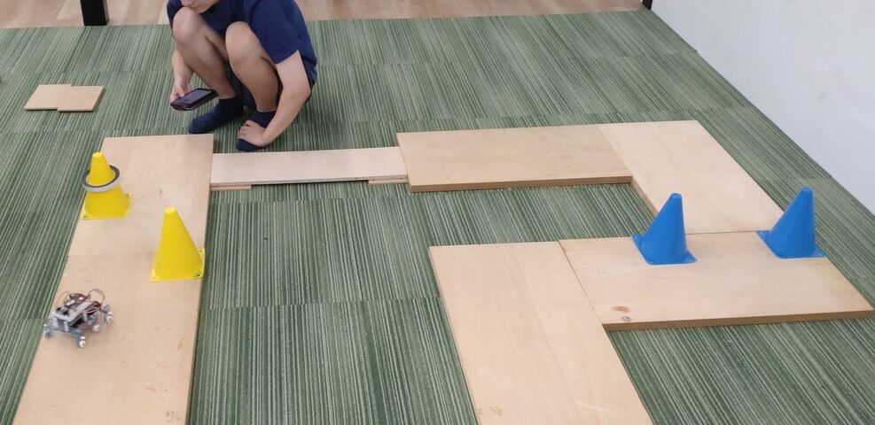 同じキットを組み立てても、歩行時に右にそれるもの、左にそれるものなど個体差があり、なかなか思い通りに進みません。中には突然通信が遮断され操作不能に陥る場面も。