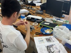 最近の学生はものづくりの経験が少ないせいか、組立説明書を傍らに四苦八苦しながらキットを作成していました。