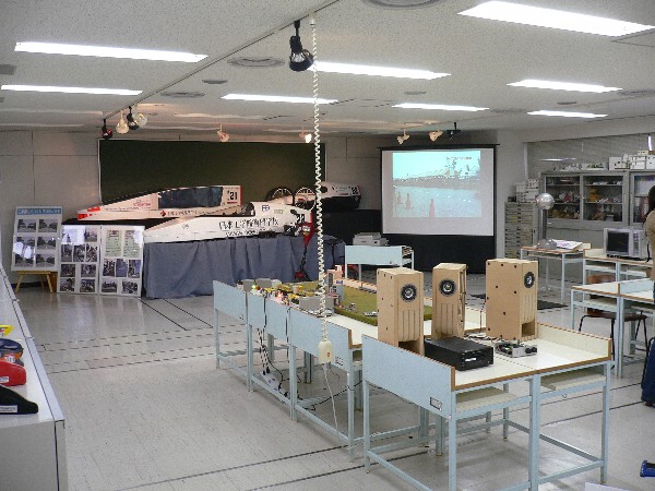 電子工学専攻では、自作のオーディオアンプやスピーカーの展示を行いました。普段見えない部分を見てみなさん感激していました。
