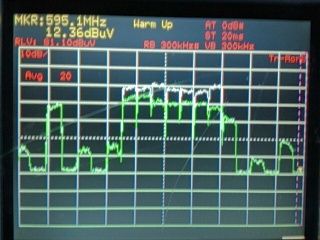 白い波形がスカイツリーからの放送時、緑色が東京タワーからの電波です