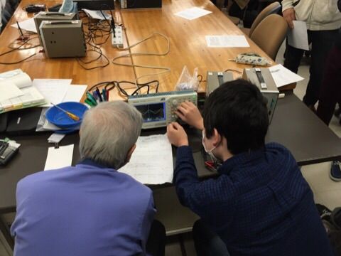 先週に引き続き、今週も測定器の使い方の実技試験。みんな、秋野先生にしぼられています。