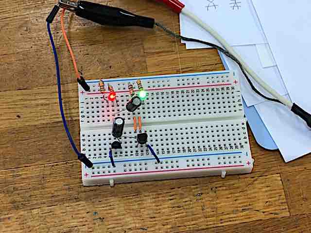トランジスタの動作を実習で確認して、LED点滅回路(マルチバイブレータ回路)に挑戦!
