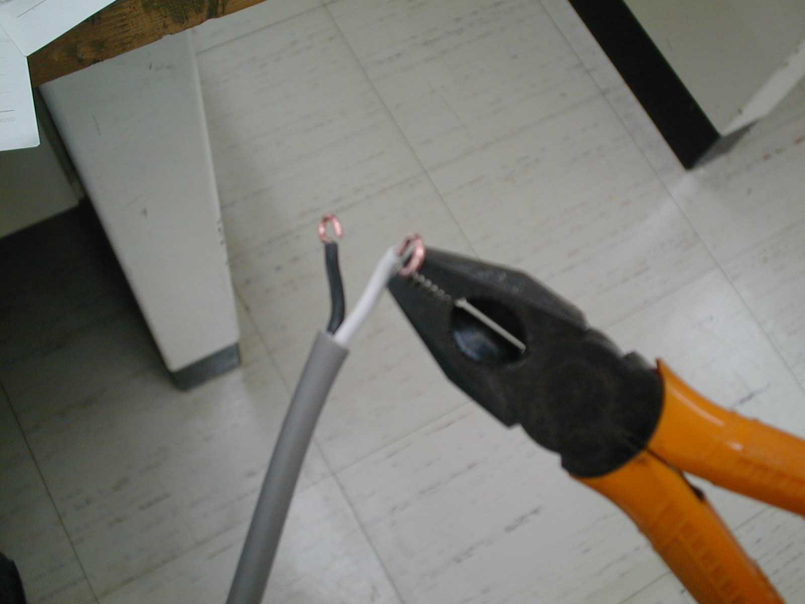 今度はペンチで被覆を向いた部分をつかんで折り曲げましょう。