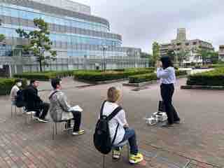 キャンパス内でドローンにワイヤーを付けた状態での飛行になりますが、初めての操縦でも無事飛行させることができ、貴重な体験をすることができました。