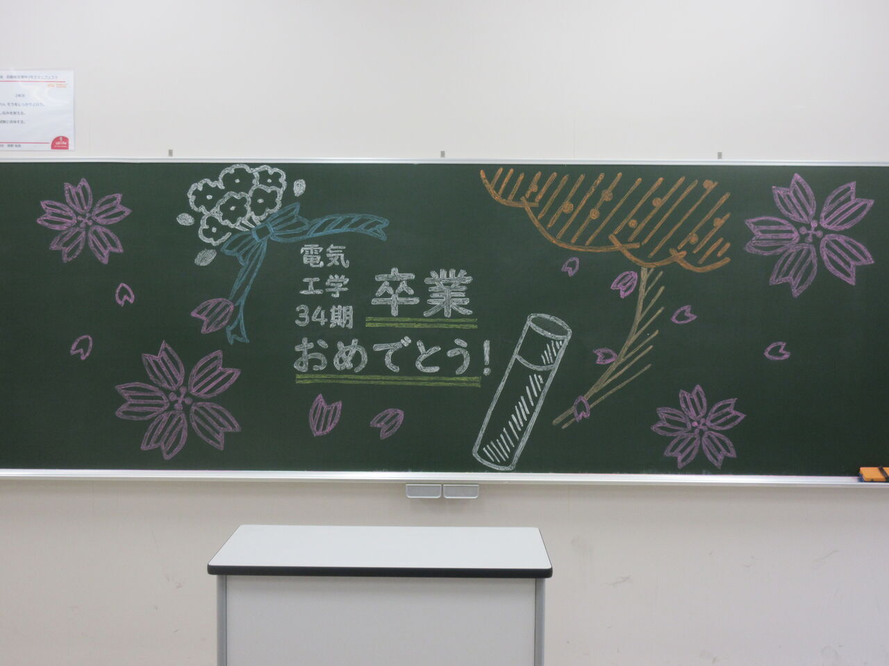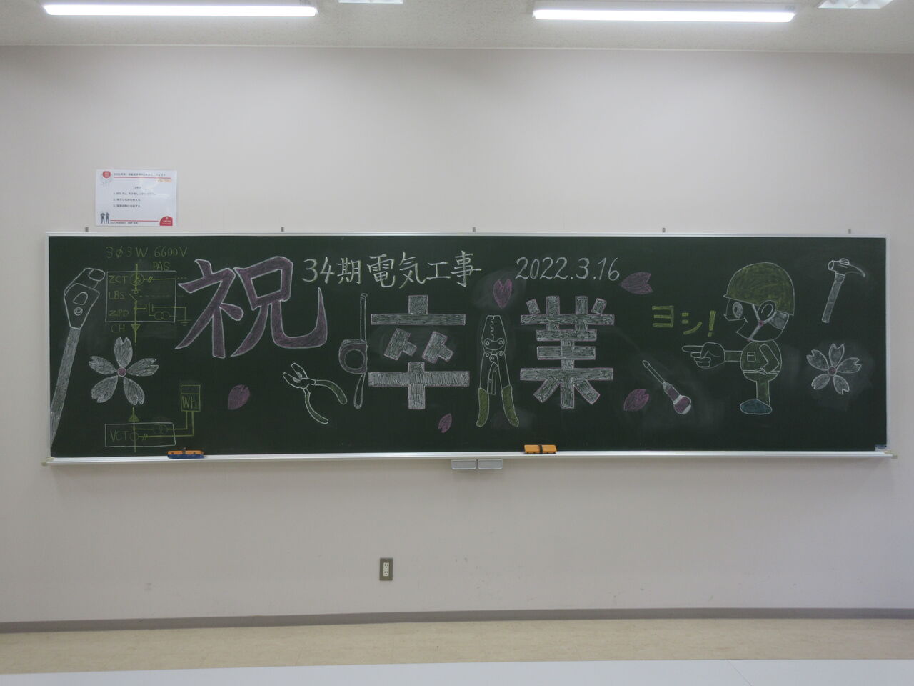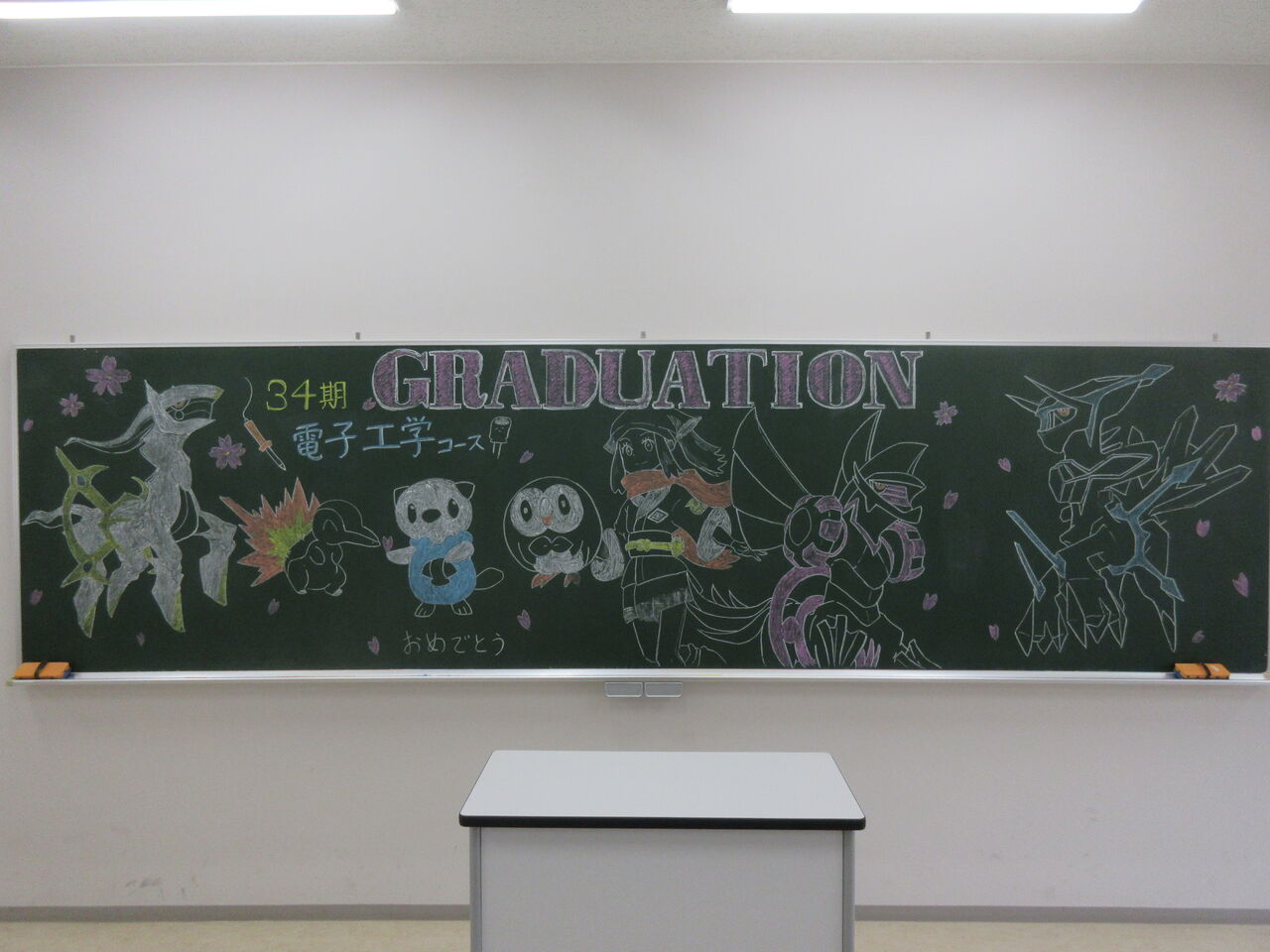 3/16(水) 八王子キャンパスにおいて「令和3年度・卒業証書授与式」が執り行われました。コロナに始まりコロナに振り回された学年でしたが、結局2年経っても終息せず、保護者来場なしでの卒業式となりました。せめてもの気持ちという事で、前日に各クラスの担任が心を込めた黒板アートを作成しました。心のこもったメッセージと各コースの特色が色濃く出ている作品になったと思います。