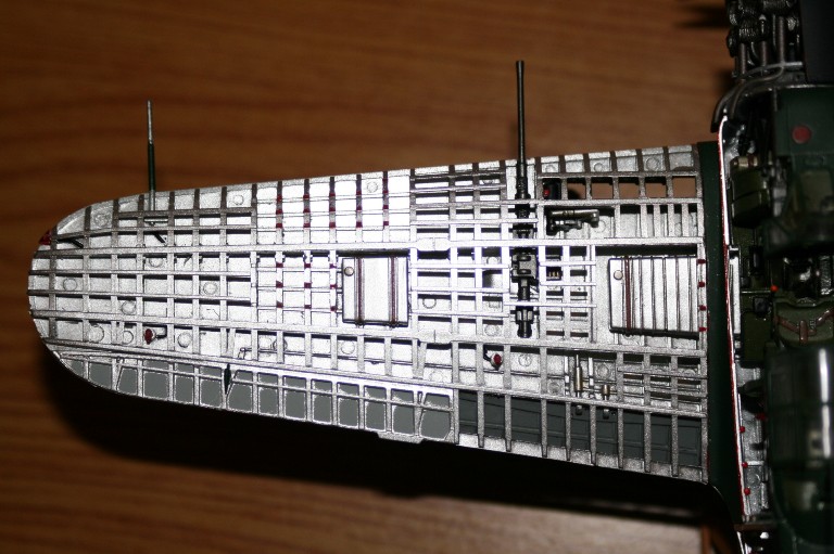 写真は52型の主翼で翼内燃料タンクを見せるために、一部の部材をカットしてあります。これを見るとエルロン(補助翼)はワイヤーリンゲージ、脚とフラップは油圧という構造が解ります。