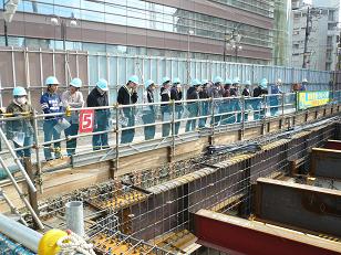 画像は、2月に行なわれた蒲田キャンパスの新校舎の建設現場見学の様子。