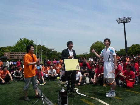 昨日、蒲田キャンパスの体育祭Supported by MIZUNO「テーマ:Fine Play! 〜クラスメイトの絆で〜」と題して、快晴の中で開催しました。開会式には、昨年度に続き、スペシャルゲストが登場あの曲が競技場内に響きわたった瞬間、大歓声 「切れてない〜」でお馴染みの「長州 小力」氏の登場とパラパラで競技場内が盛り上がりました 今年は、学生をさらに元気に さらに盛り上げるため 開会式後、さらにスペシャルゲストが登場。熱い男 松岡修造氏のものマネで有名な「ぼれろ」氏がテニスラケットとドッジボールの優勝カップを持って学生の前に登場ここでも競技場内は大いに盛りあがりました。今回の体育祭は、スポーツメーカー大手 「ミズノ」社の多大なるご協力をいただきまして、日本工学院 蒲田キャンパス ドッジボールNo1決定戦。「ミズノ杯」を開催することができました。建築学科(4年制) 1年1組が予選を勝ち上がり、学校全クラスの中で、見事「第4位」に輝きました。 おめでとう! お見事です。 この体育祭で各クラスの親睦、絆がさらに深まったことでしょう。 次の学校行事は、秋の学園祭(かまた祭)で盛り上がりましょう! 学生実行委員会の皆さんもお疲れさまでした。 (担当:シミズ)