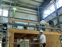 [画像:施工実習]建築施工実習(コース選択科目)では後期から始まる、建て方実習のために、現在建っている、実習建物を解体いたしました。解体と言っても、壊す訳ではなく、また組立できるよう、丁寧に分解することです。昨年度の先輩達が、建てた建物を解体するということで、伝統の引継ぎをしているようで、生徒達は、目を輝かせて解体しておりました。建て方は解体よりもっと面白いぞ!是非楽しみにしていて下さい。(担当:久本)