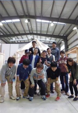 太陽の光であふれる明るい空間を目指して計画し17人のメンバーと先生の助けを借りながら完成した この『光の入る家』。まずはこの形。日本工学院八王子校ということ、かわいいぱっちいの家ということ。この二つのことを踏まえて"八"王子の八角形で存在感のあるデザインになっています。第一のテーマでもある"光"をふんだんに取り込む目的で、屋根・外壁部材には波板を用いています。半透明のスタンダードなものですが太陽の光もしっかり入り、身近で親しみのある部材です。当初壁の上下には室内にこもった熱を逃がし、通気をよくするための空気の出入り口と波板で覆われたデザインのアクセントとしてルーバーを備える設計をしていましたが思うようにいきませんでした。結局、通気に関しては波板と直線材のおさまりから自然と風の流れが発生することが分かったので、この問題点は解消しました。制作をしていく中で知識や技術だけでなく、作業配分、お金の見積もりなど色々な場面で悩みながらも、初めて自分たちで一つの建物を造り上げたことに達成感と建築の楽しさ・難しさを身をもって知ることができました。