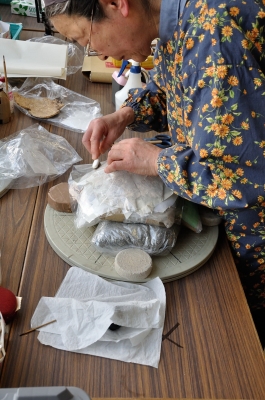 今日は土器の拓本(たくほん)をとる作業を見てみようね