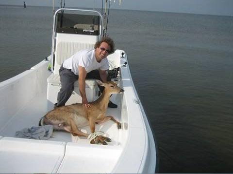 沖合いで釣れてしまった大物06海でシカが泳いでたら、そりゃびっくりしますよ。
