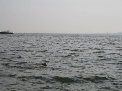 巨大なサメかなんかだと思ったよ、シカって泳げるのか