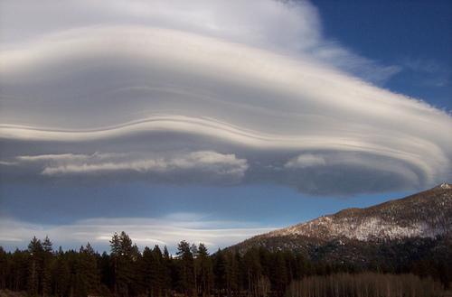 逆にこちらは魔王が復活でもしそうです。レンズ雲と以前記事にした「乳房雲」が、嵐のあと激しくちぎられたようになった状態。