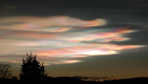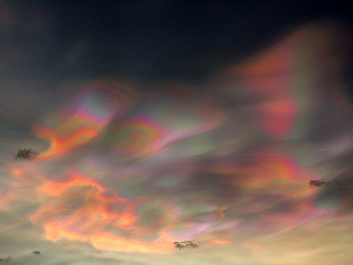 七色に輝くこの雲は、真珠母雲と言うそうです。
