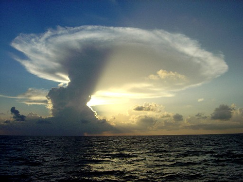 天地創造か終末のような空模様02噴火でもしたかのような逆さ円錐形になっています。