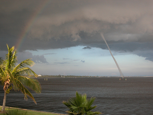 竜巻と虹が同時に発生した奇跡の瞬間。現場にいたら鑑賞どころではないでしょうけど。