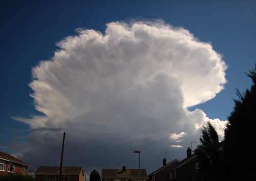 薄い雲に積雲が突き刺さっています。どういう気象条件だとこうなるのでしょうね。
