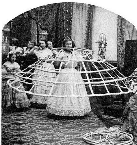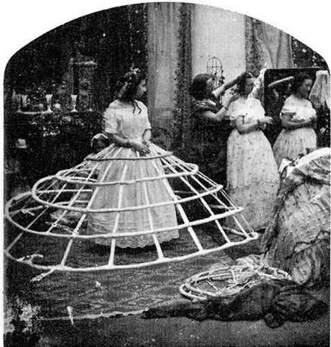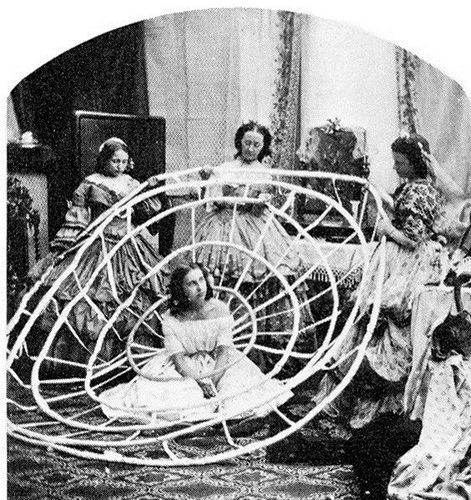 中は傘のような骨組みになっているのですが、150年前の1860年に撮影された、着付けをしている貴重な写真をご覧ください。