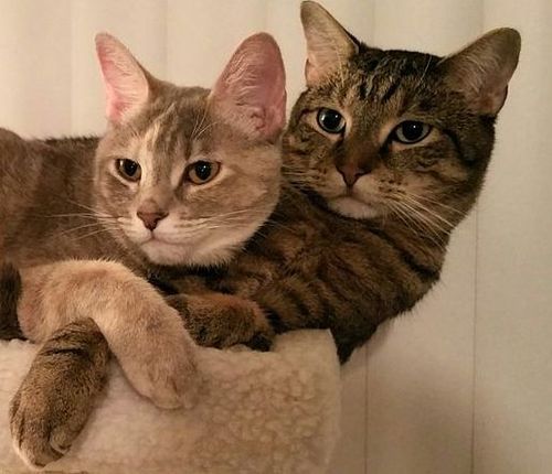 海外の彼氏の猫と彼女の猫が一緒にいる写真をご覧ください。