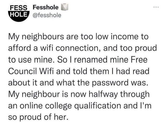 「隣人は低所得でネット接続の余裕もなく、私のWi-Fiを使うにはプライドが高すぎる。