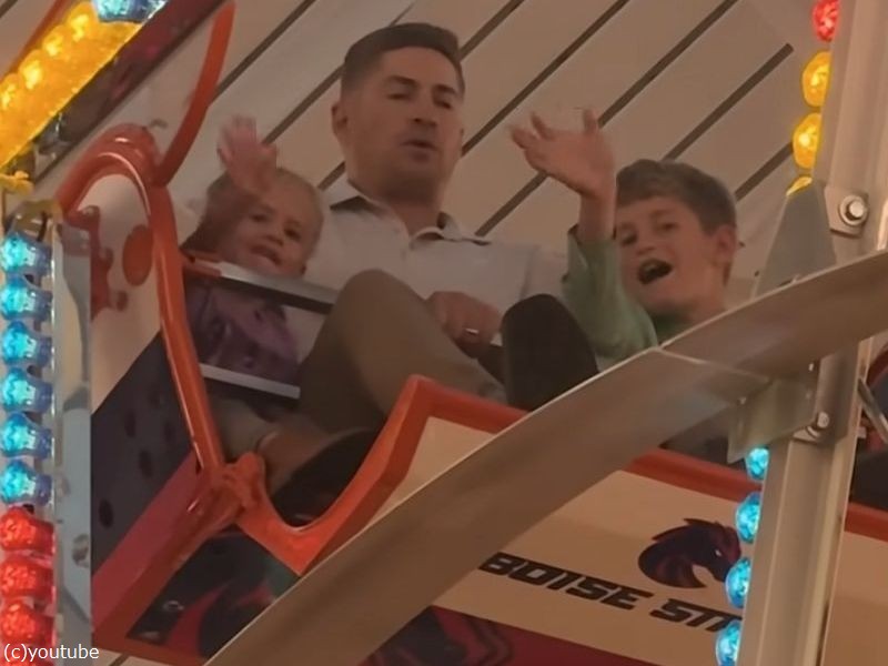 「パパだけ高所恐怖症」幼い子供たちのために観覧車に乗って顔が凍り付く(動画)