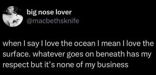 「私が海を好きだと言ったら、それは海の表面が好きって意味。水面下で何が起きていようと敬意は払うけど、それは私の知ったことではない」