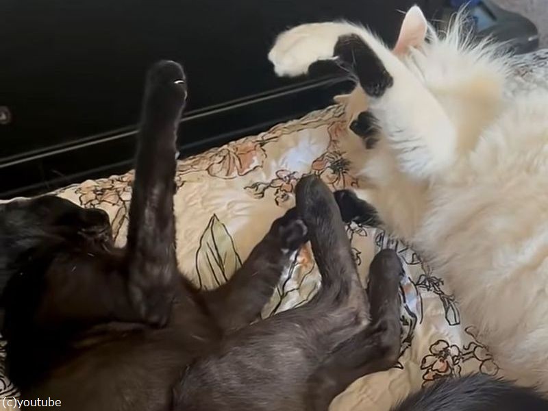 続きを読む ]]>寝たまま動こうとしない2匹が、ネコパンチの応酬をしていました。