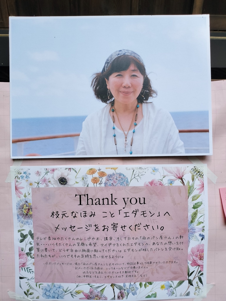 2月にご病気で亡くなられた枝元さんに、メッセージを書いて貼れるコーナーをつくってくださっていました。
