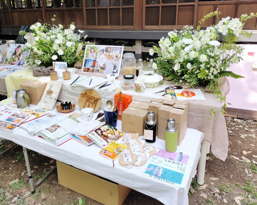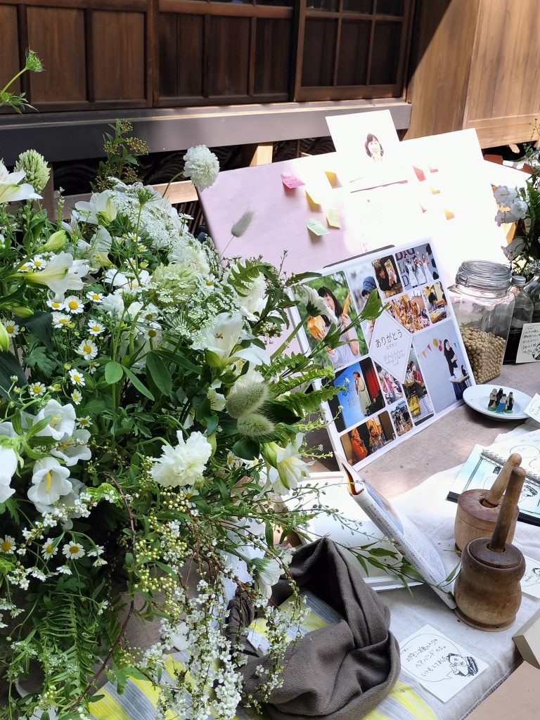 白い美しいお花で飾られ、枝元さんの思い出の品がたくさん置いてありました。