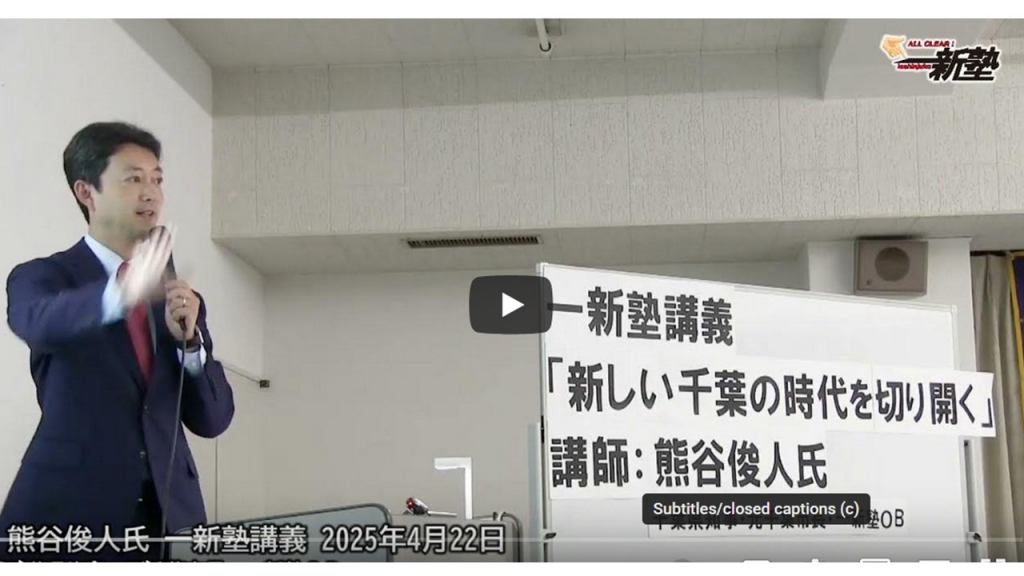 一新塾卒塾生の千葉県知事の熊谷俊人氏の2025年4月22日の一新塾でのご講義『新しい千葉の時代を切り開く』を一部抜粋した映像です。