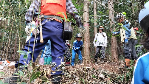 もう一つは、今回は手帳を使っての体験学習でしたが、我々はそれ以前に、下見チェックリストと言う用紙を用いて現場が安全かどうかということを確認しています。その際に枯れて危険な木があると、前もって伐り倒しておきます。今回も、事前に4本ほど伐り倒してありますが、安全が一番大切です。