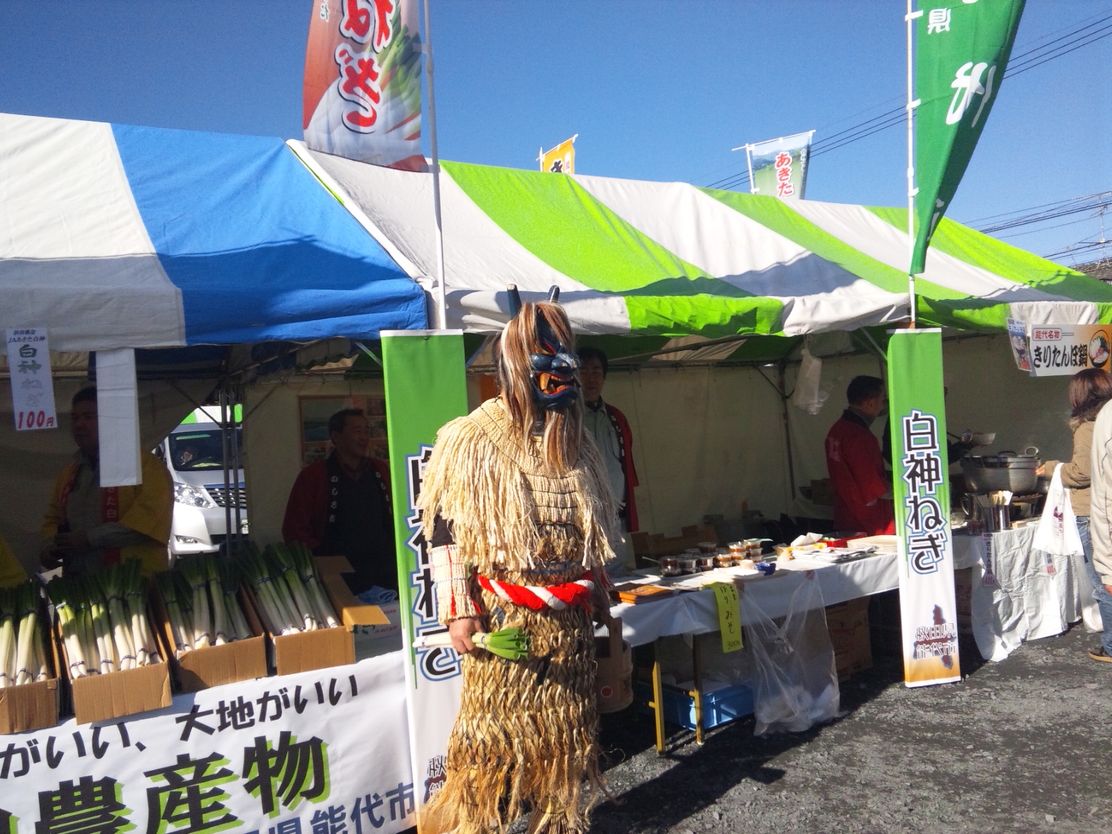 秋田県の白神ねぎの応援に駆けつけた、「泣く子はいねがー」ななまはげ様。
