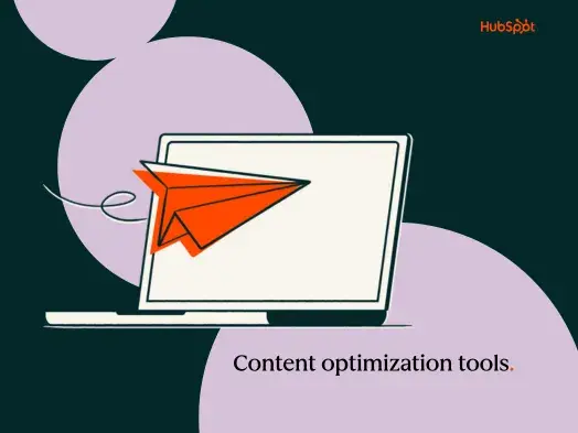 [画像:a HubSpot-branded featured image with a burgundy background and pink shapes in the foreground, with the words ‘answer optimization’ in the bottom righthand corner and an orange and white computer in the upper lefthand corner]