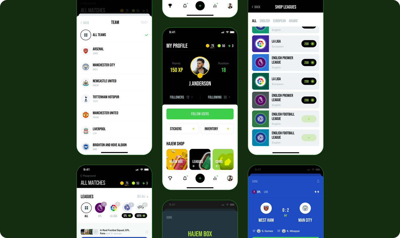 Hajem Sports is a social interaction mobile platform targeted at soccer fans who find bliss in making match predictions and benefit from it. We developed it with convenience and flexibility in mind, allowing users to easily manage every essential feature — from monitoring available leagues to starting competitions— at their fingertips.