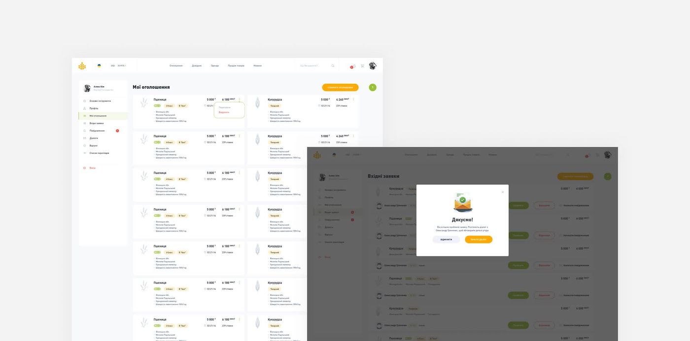The main challenge was to create functional tool for farmer, trader and logistic, that enables to select, bid and discuss with the consummation of the transaction directly on the platform.